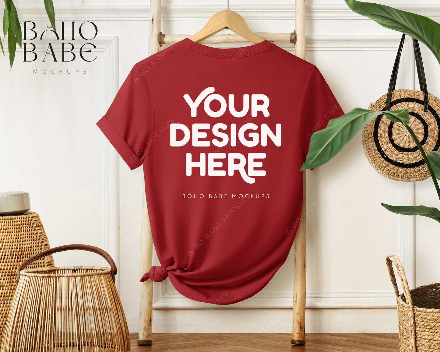 Bella Canvas 3001 CANVAS RED Hanging Back of T-shirt Mockup | Boho Babe Mockup Design