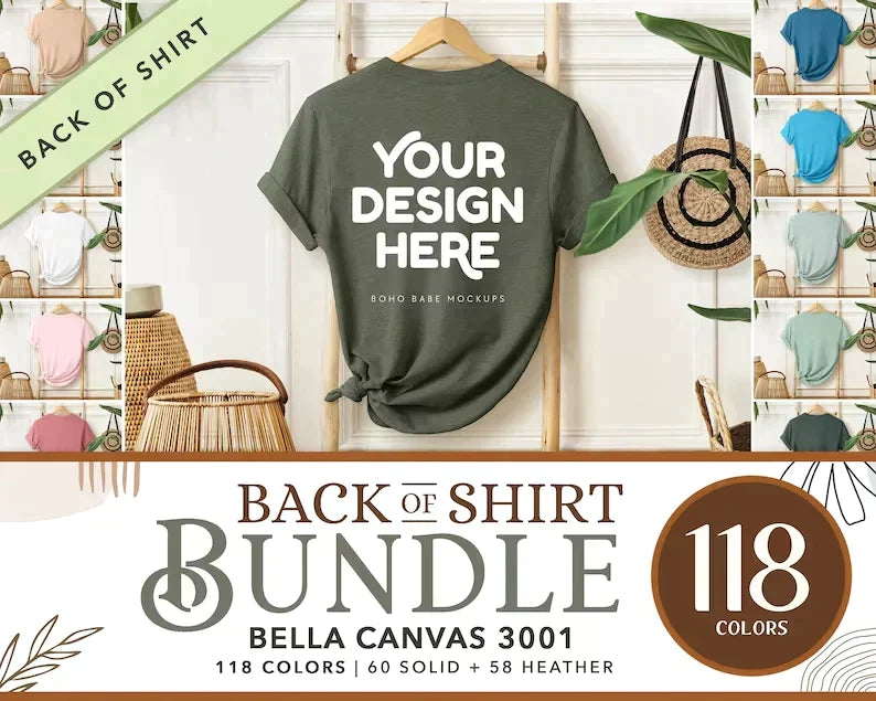 Boost your print on demand business with this Bella Canvas 3001 Hanging back of shirt mock up. Our collection of simple trending boho mockup designs will increase your sales and drive more traffic to your print on demand store.