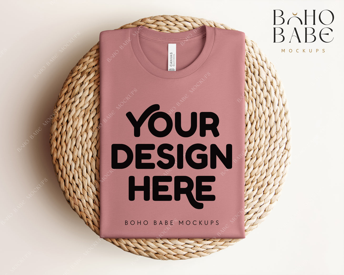 Bella Canvas 3001 MAUVE Folded T-shirt Mockup | Boho Babe Mockup Design