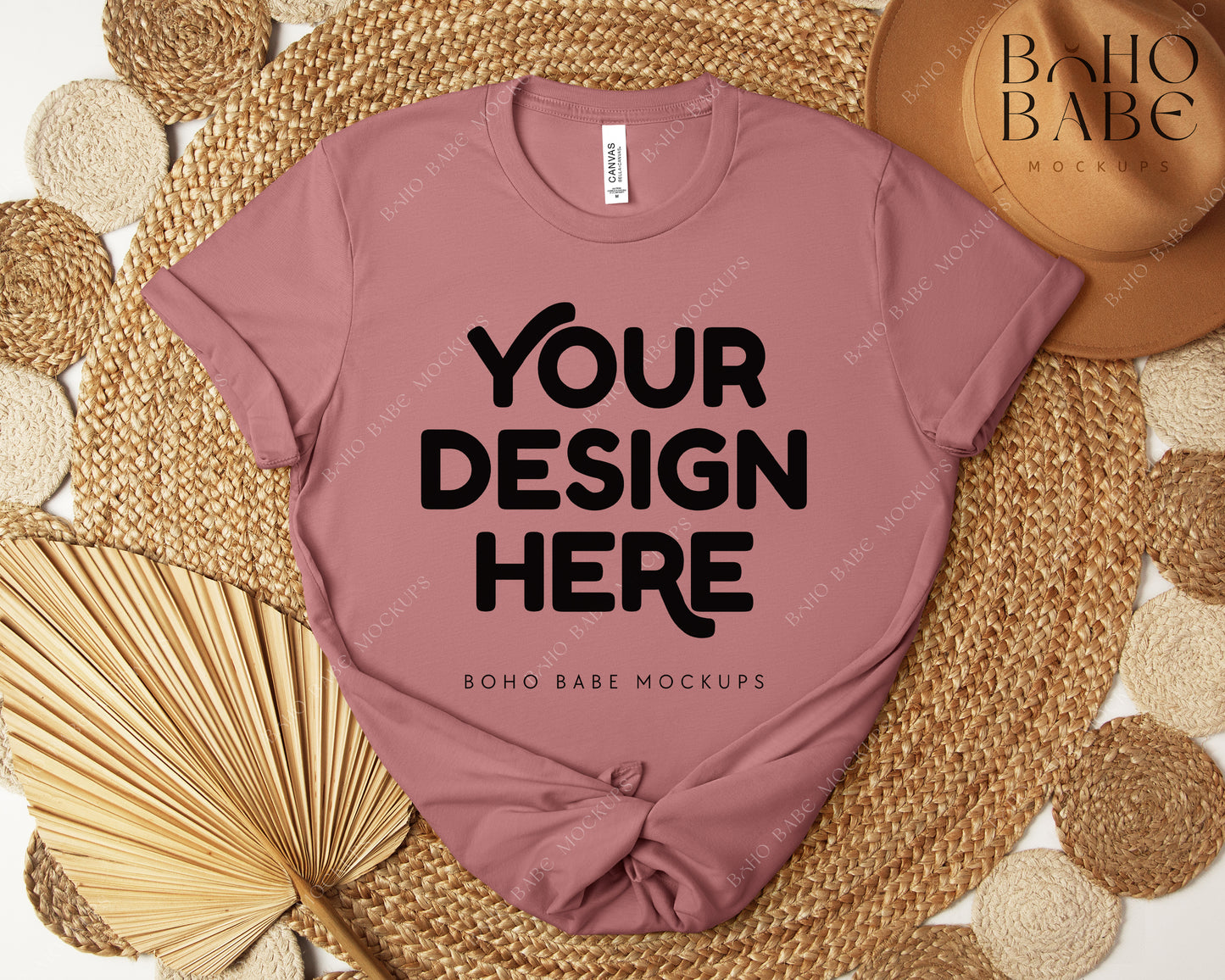 Bella Canvas 3001 MAUVE T-shirt Mockup | Boho Babe Flatlay Mockup Design