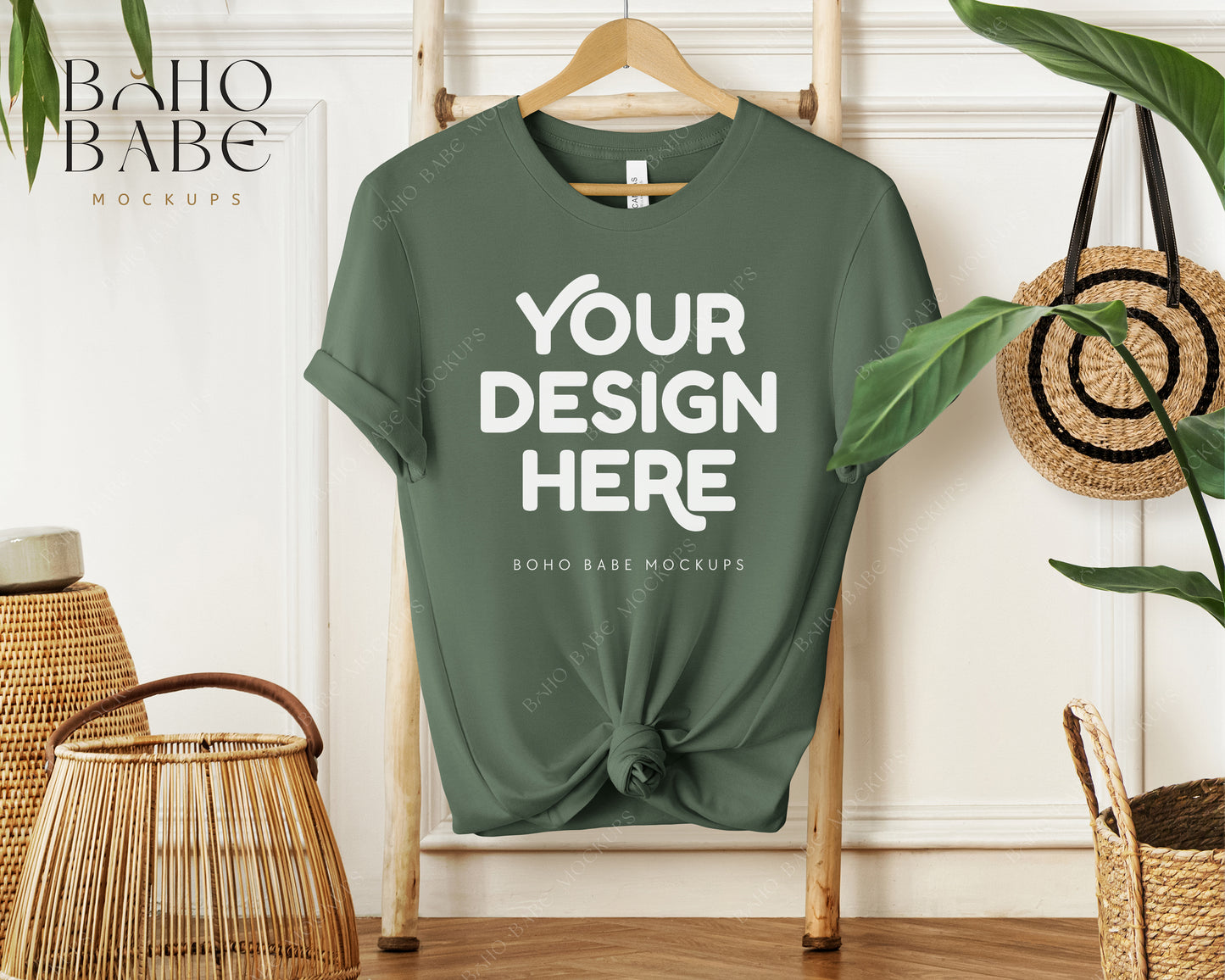 Bella Canvas 3001 PINE Hanging T-shirt Mockup | Boho Babe Mockup Design