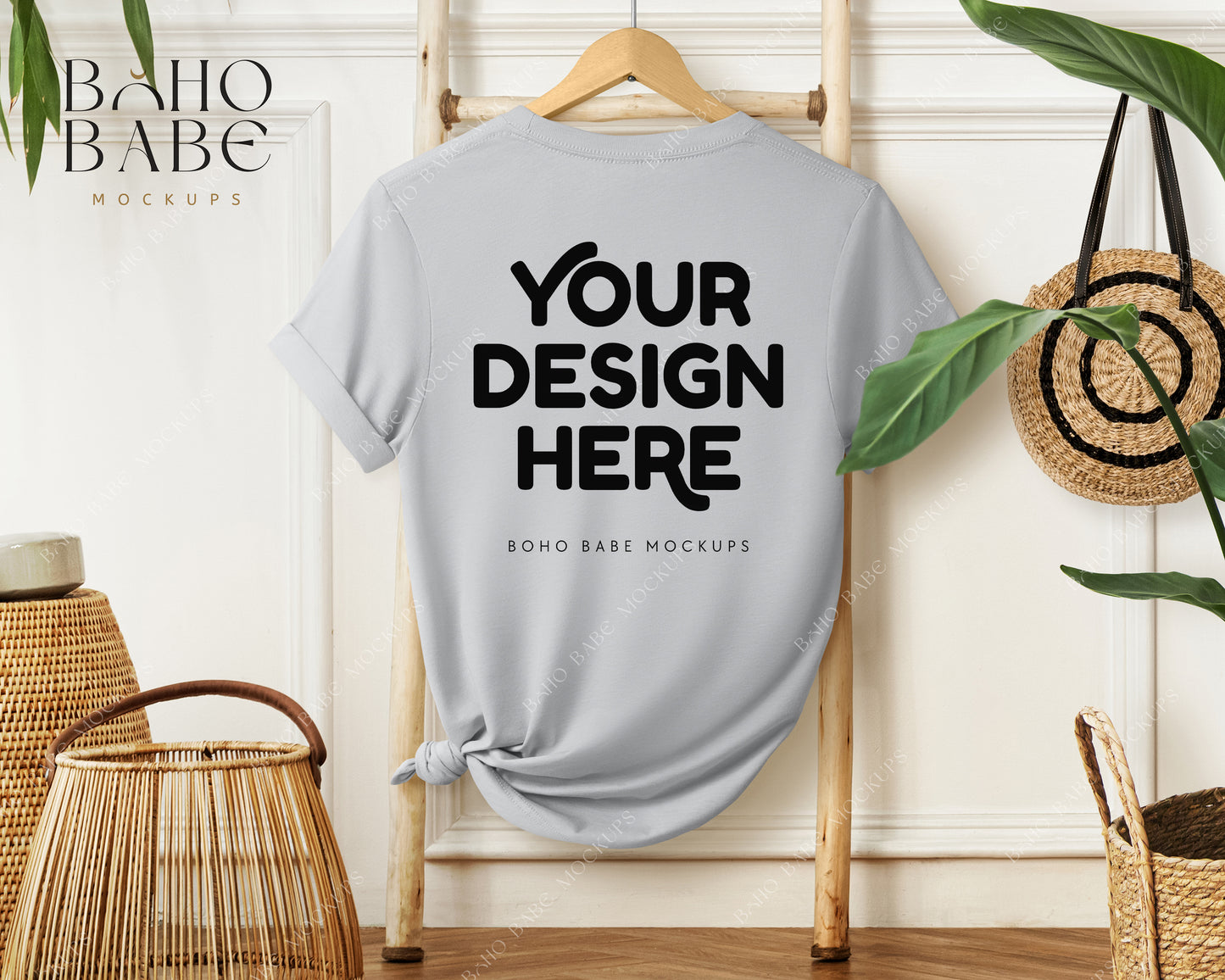 Bella Canvas 3001 SOLID ATHLETIC GREY Back of T-shirt Mockup | Boho Babe Hanging Mockup Design Vol.1