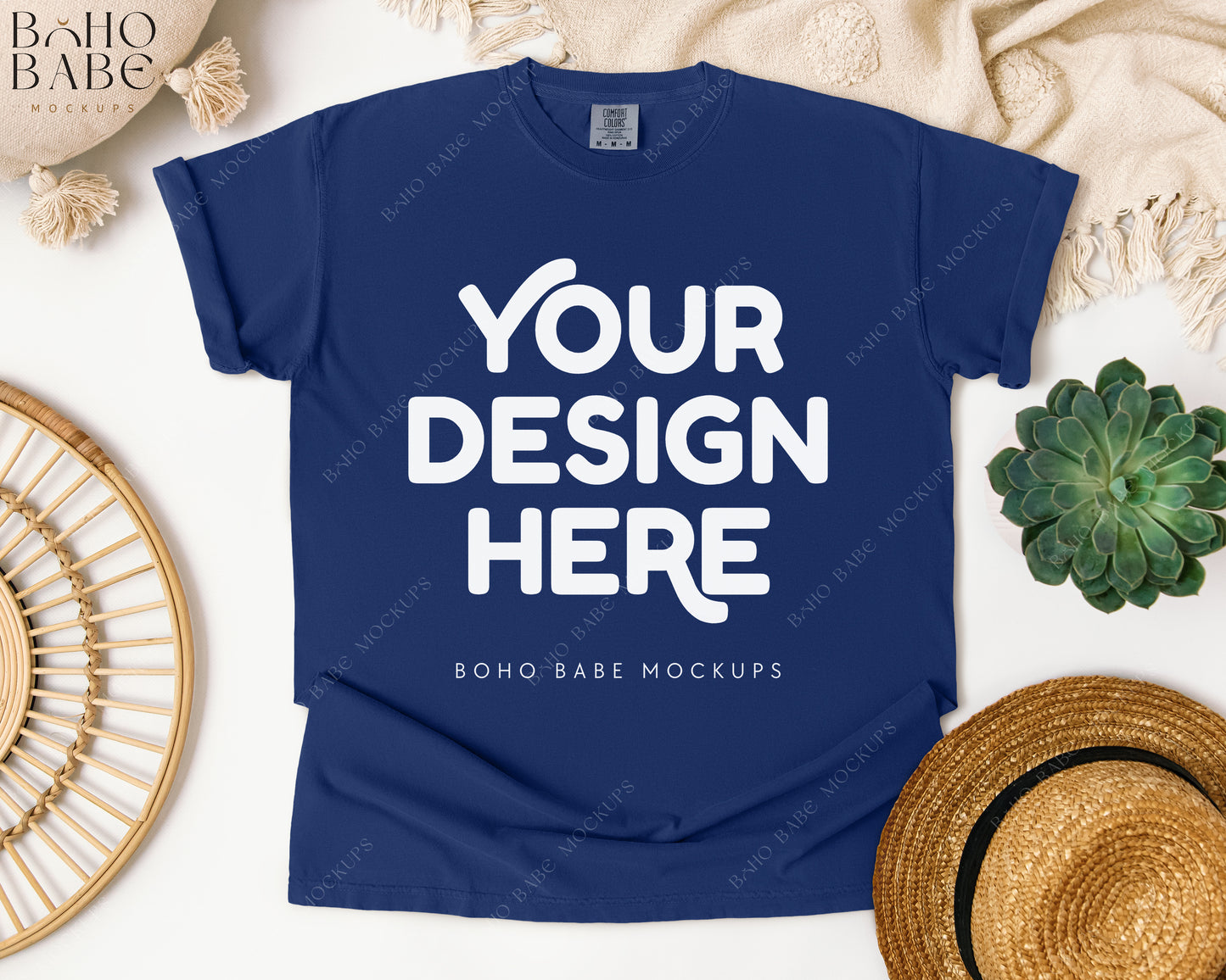Comfort Colors 1717 CHINA BLUE Flatlay T-shirt Mockup | Boho Babe Mockup Design