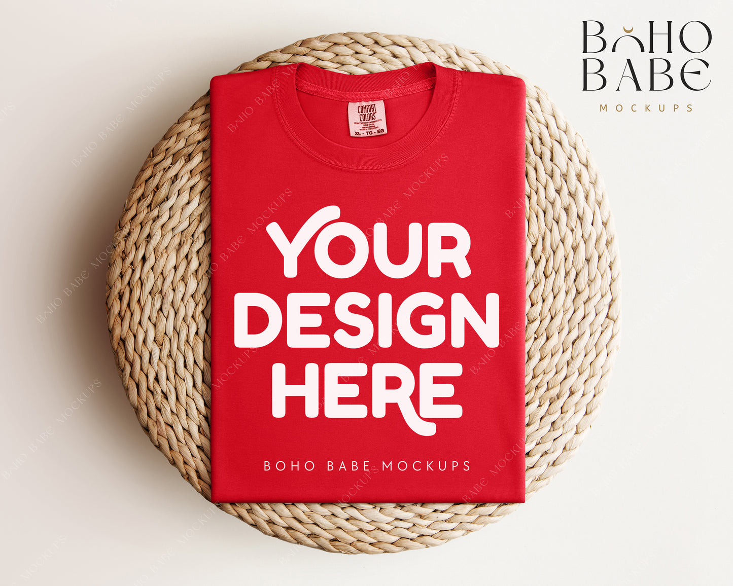 Comfort Colors 1717 RED Folded T-shirt Mockup | Boho Babe Mockup Design