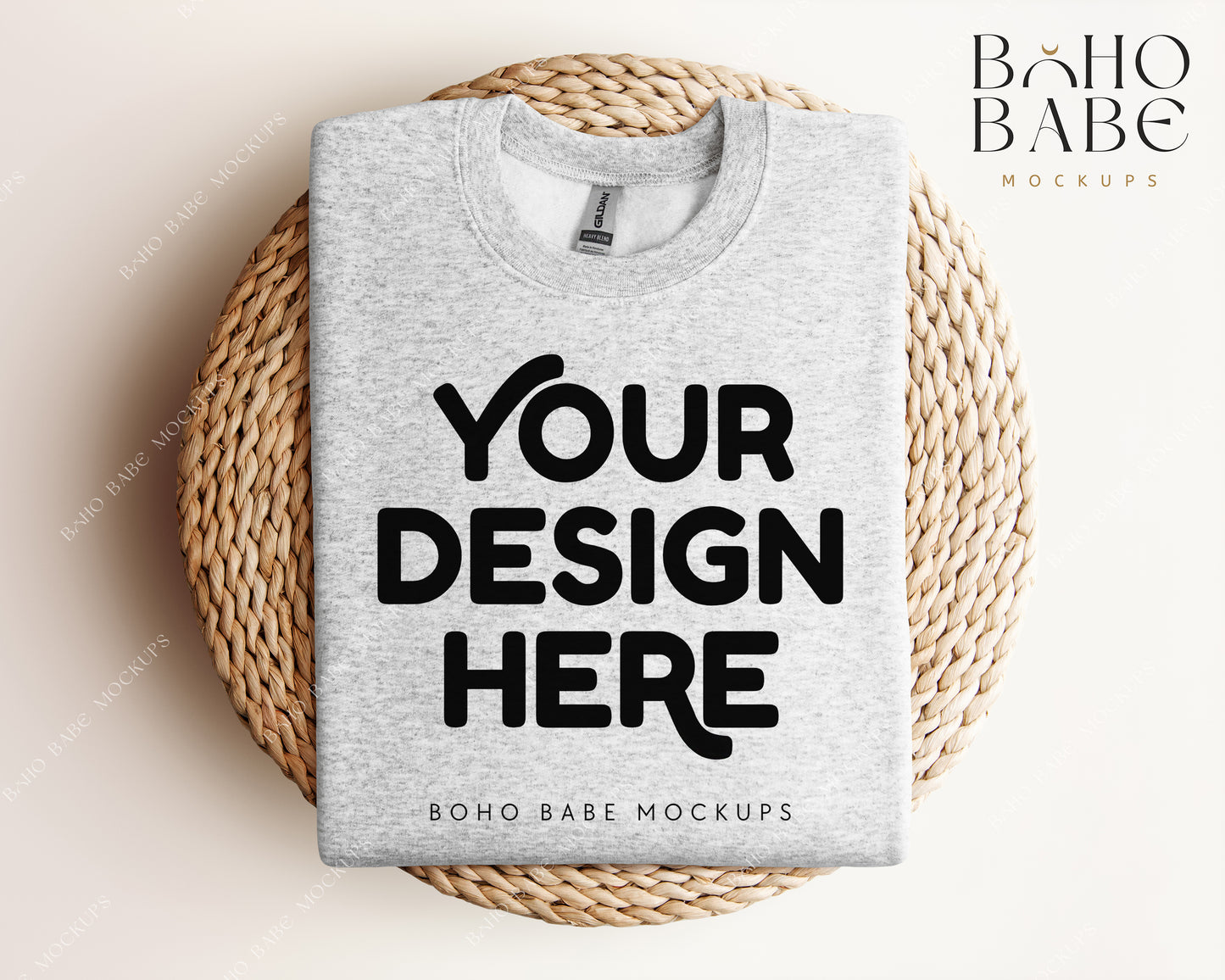 Gildan 18000 ASH Sweatshirt Mockup Design | Boho Babe Mockups - Folded Vol.1