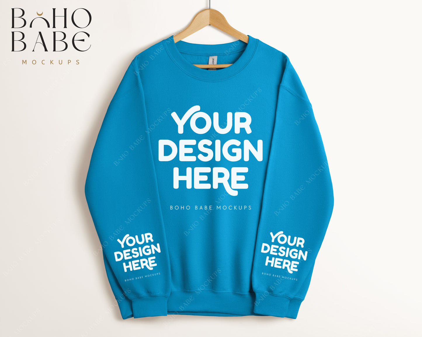 Gildan 18000 SAPPHIRE Sleeve Sweatshirt Mockup Design | Boho Babe Mockups - Hanging Vol.5