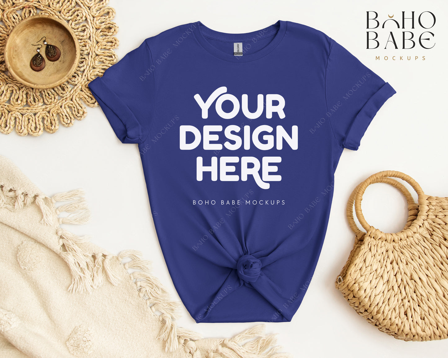 Gildan 64000 COBALT T-shirt Mockup Design | Boho Babe Mockups - Flatlay Vol.2