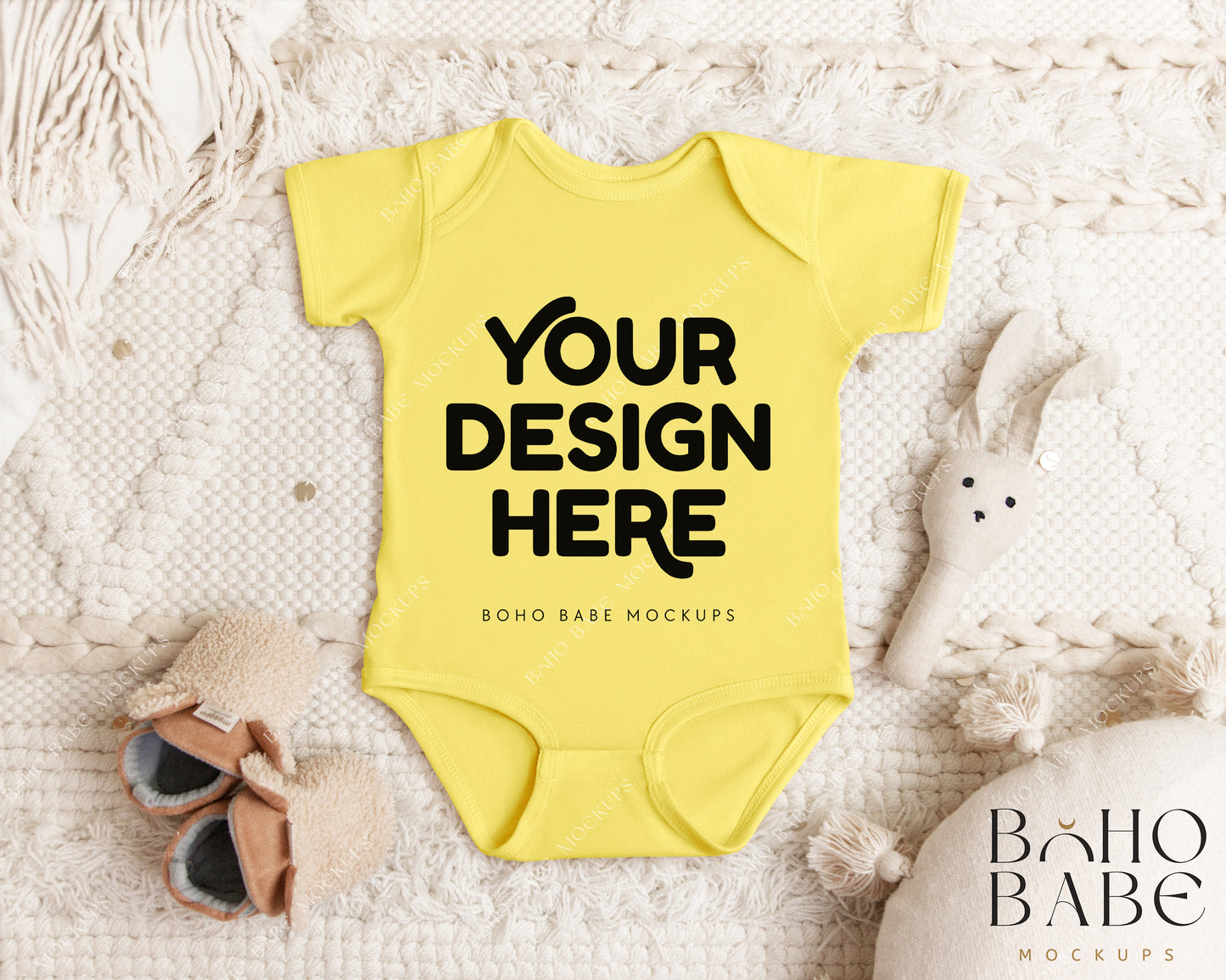 Rabbit Skins 4424 BUTTER Short Sleeve Onesie Mockup | Boho Babe Flatlay Mockup Design Vol.1